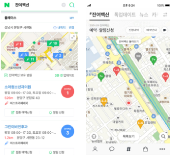 오늘 1시부터 당일백신예약이 네이버와 카카오를 통해 잔여백신을 조회하고.